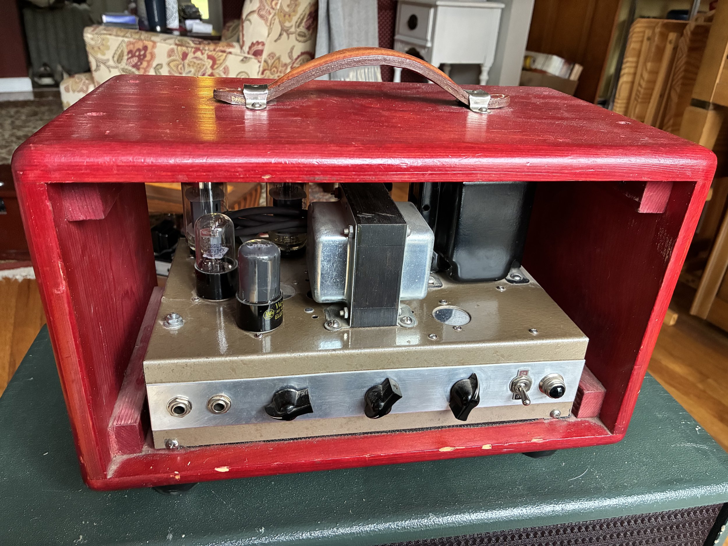 Handbuilt 2x6L6 amplifier. Great Plexi-sounding circuit. Tube rectifier. $500.00 With 1-12 cabinet (WGS speaker) $750.00