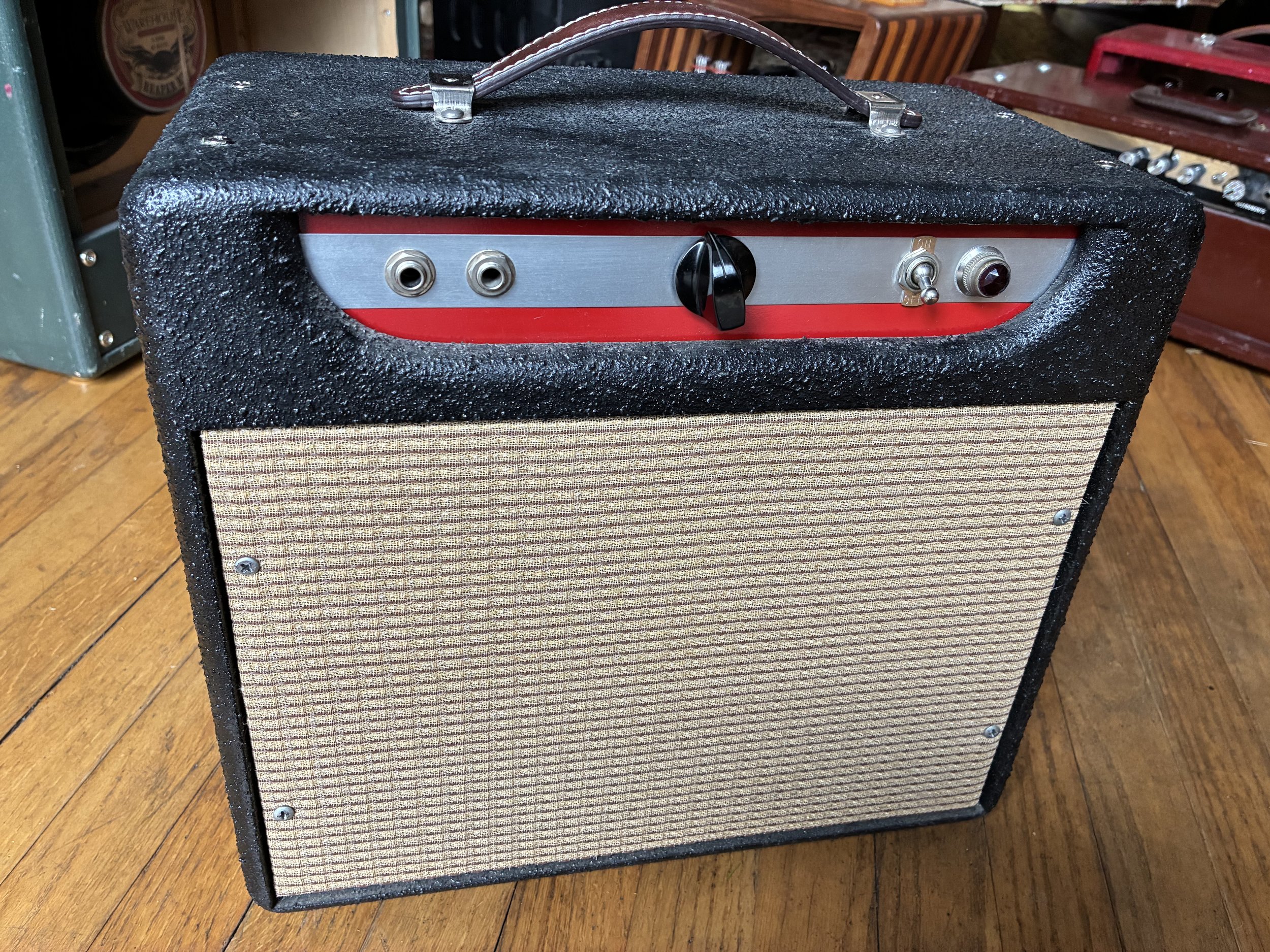 Handbuilt Champ-style amp (5F1 circuit) in completely original enclosure w/ 8” Tone Tubby hempcone speaker. $1000.00